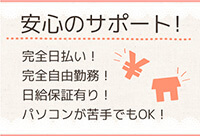 | 勤務日: | 完全自由出勤制!月1日・週1日からでもOK! |