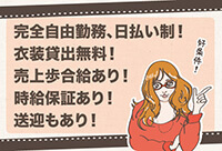 | 給与: | 日給保証:8万円以上確実支給+指名歩合α |